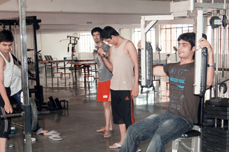 A well equipped Gymnasium with the latest equipment for physical conditioning is available for students of all ages.The gym has yoga and gym mats, bench press and weight machines, pull-up bars and multiple dumbbell sets for the senior students and a full playground complete with swings, monkey bars, slides, etc. is available for the junior students.
